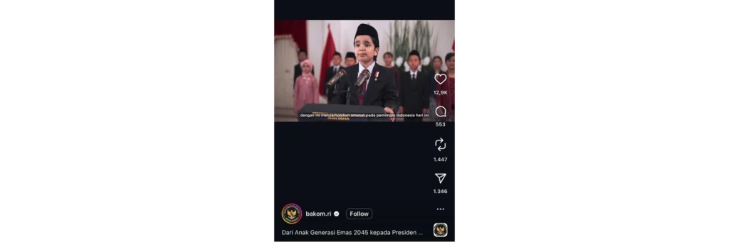 Video berdurasi 1 menit 18 detik yang diunggah oleh akun Badan Komunikasi Pemerintah (Bakom) RI, Minggu (19/10/2025), menarik perhatian publik. Video tersebut dirilis sebagai bagian dari refleksi satu tahun pemerintahan Presiden Prabowo Subianto.