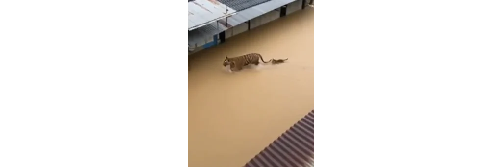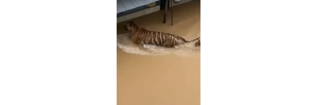 Tangkapan layar video harimau Sumatera saat banjir. (Sumber: TikTok).