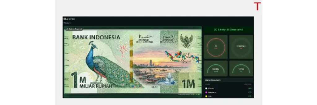 Hasil pemeriksaan Tempo menggunakan pendeteksi jejak kecerdasan buatan pada desain uang Rp1 miliar menunjukkan bahwa gambar tersebut merupakan produk AI, dengan tingkat kemungkinan mencapai 96 persen berdasarkan alat AI or NOT.